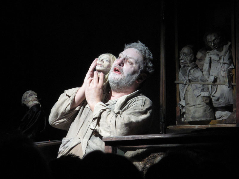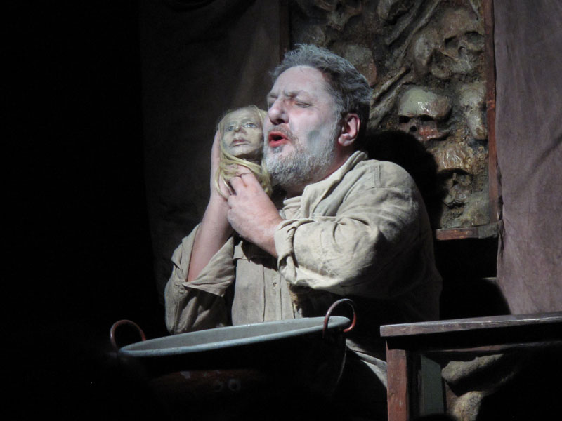 ausharrend, anhand der Totenschädel die Geschichte erzählt, versucht
